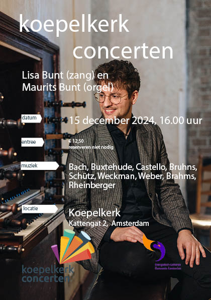 Op 15 december is het volgende Koepelkerkconcert met Lisa (zang) en Maurits Bunt (orgel) in de monumentale Ronde Lutherse Kerk te Amsterdam (Kattegat 1, loopafstand Centraal Station)